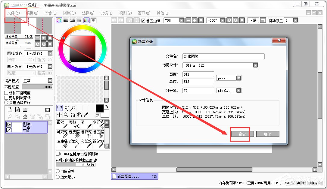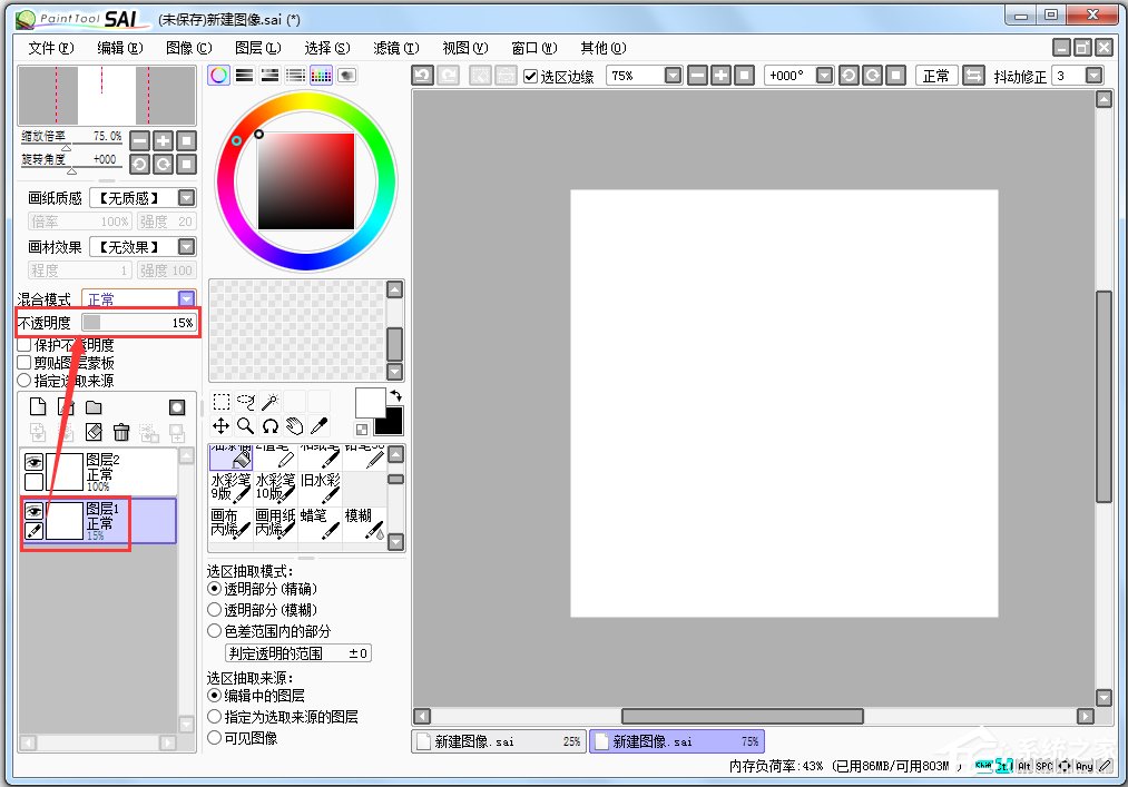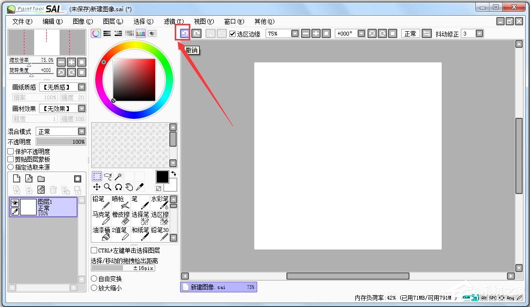 4、SAI没有历史记录面板,但是可以通过画布左上角的箭头控制回撤和恢复,快捷键是Ctrl + Z和Ctrl + Y。
