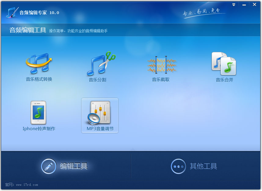 音频编辑专家是一款功能强大,操作简单的音频编辑工具,涵盖了音频截取、音频合并、音量调整、音频格式转换、铃声制作等功能的超级音频工具合集。
