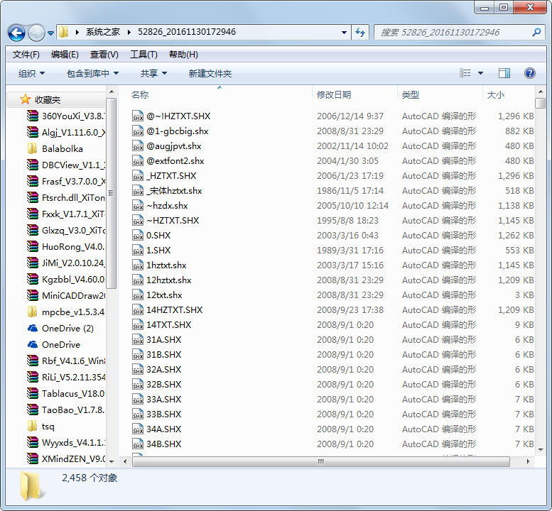 2、打开解压得到的文件夹,将其中所有SHX格式的字体文件拷贝至如图所示的AutoCAD安装目录下的Fonts文件夹内。注意:如果电脑中安装了多个版本的AutoCAD软件的话,则需要在每个安装目录中都拷贝字体文件。