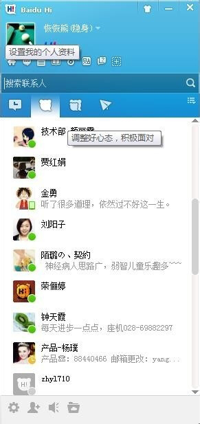 自由切换界面颜色,随时展现我的心情。点击百度Hi主面板换色按钮,即可自由切换近17万种百度Hi皮肤颜色,随时展现我的多彩心情!