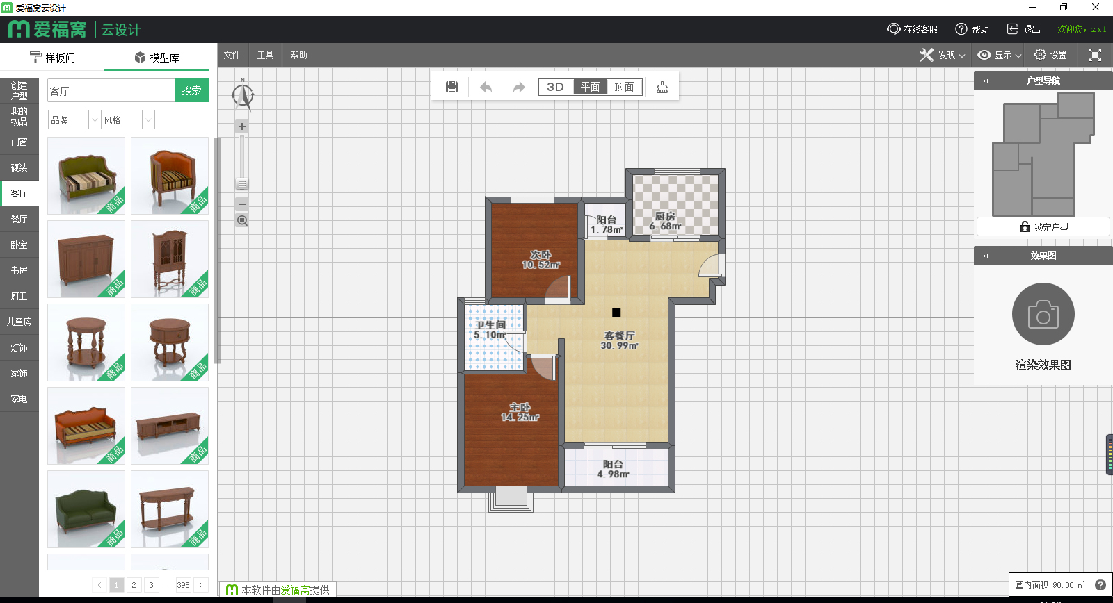 4、轻轻松松点一下、拖拽、放置家具,软装硬装一键进行;
