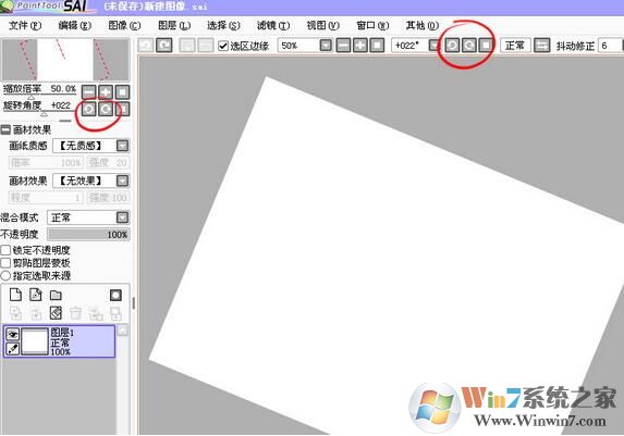 2、如果您想使用SAI软件的自由地旋转画布视角,您可以使用快捷键ALT + 空格 + 光标运动,就可以实现任意旋转画布视角,或者您可以点击如图中的左右旋转,也可以选择图片。