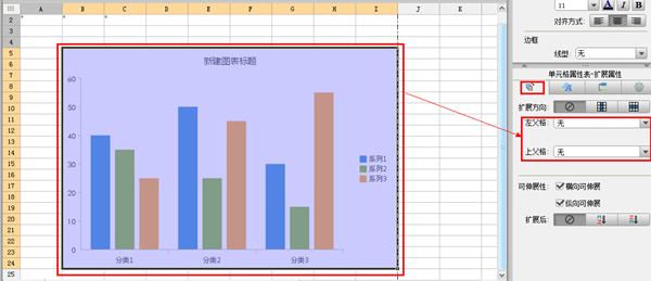 在属性设置面板中,选择图表所在单元格的左父格和上父格,分别设置为无。