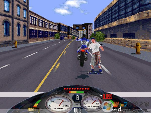 比赛进行期间,按 V 键可查看游戏版本;按 F10 为切换/显示/隐藏摩托车的仪表面板;小键盘的 + - 键为改变游戏背景的贴图颜色。