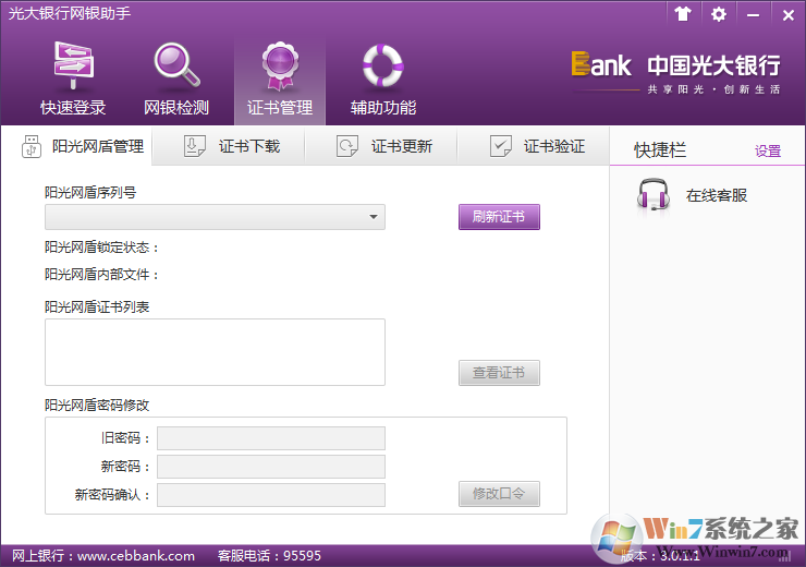 2、对网银证书进行管理