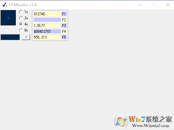 该应用程序显示的放大图像的局部区域周围光标光标下的颜色和样品。当你找到正确的颜色,你只是打F1,F2,F3或F4把您想要的代码复制到剪贴板。