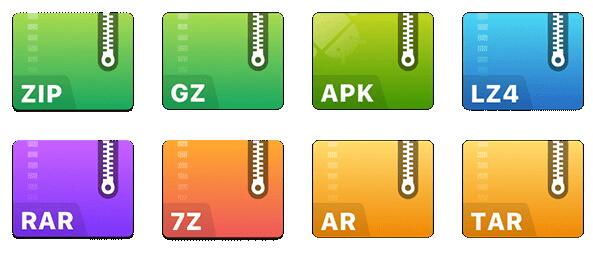 支持zip, rar, 7z, gz, iso, tgz, lzh, apk, xz, z, bz2, tar, lzma, zst, lz4等超过20种常见压缩格式。完美处理加密解密、中文乱码等问题!