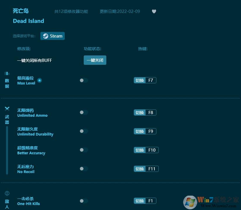 3、运行“死亡岛”游戏4、游戏运行后点击“加个Buff"按钮,当然大家也可以进行单项修改