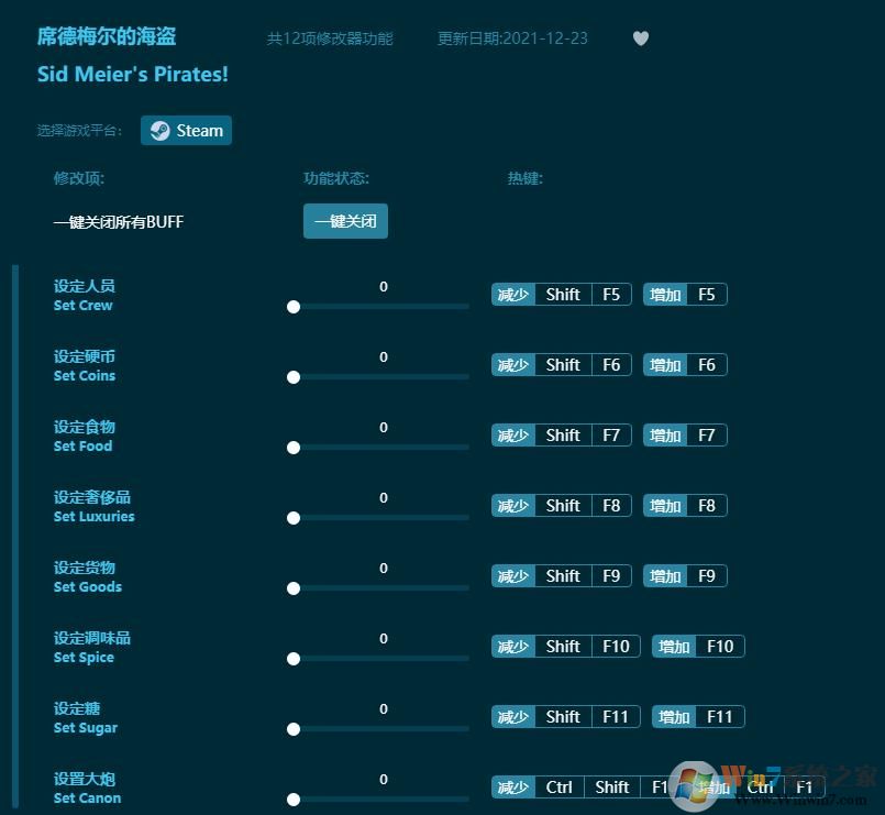 3、运行“席德梅尔的海盗”游戏4、游戏运行后点击“加个Buff"按钮,当然大家也可以进行单项修改