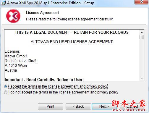 1、下载软件压缩包文件,点击“XMLSpyEnt2018sp1.exe”启动安装向导程序,根据提示一步步完成原版安装即可,如下图所示: