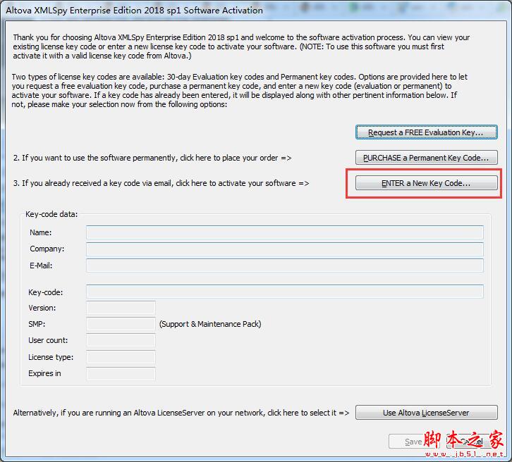 3、安装完毕之后,点击桌面的“XMLSPY”的快捷图标启动程序,软件会自动检测注册信息,如有注册码可直接填写