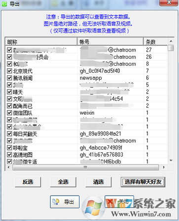 4、可以将微信聊天记录导出为html文件,这样下次查看时,您不打开本软件也可以进行查看了。在软件上点“导出聊天数据”。界面如下所示: