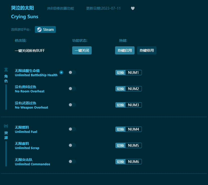 按下对应快捷键开启修改,再次按下则关闭对应修改,修改成功时会有铃声响起。当单击界面右上角关闭按钮时退出修改器,此时修改器会关闭大部分已开启的代码类修改。