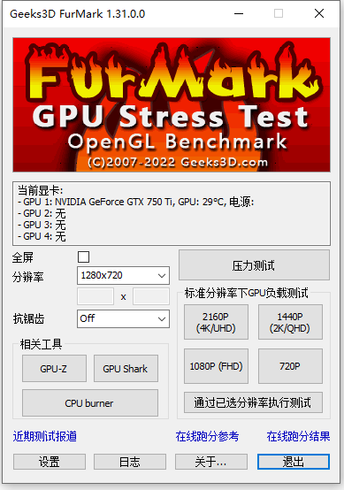 FurMark中文版是一款被称为甜甜圈烤机软件的电脑性测试软件,它可以通过一系列的测试来测试你的显卡GPU性能,最低要求NVIDIA GeForce FX系列、ATI Radeon 9600系列、S3 chrome 400系列显卡,即需要支持OpenGL 2.0规范。除了两种运行模式,FurMark还提供了多种测试选项,比如全屏/窗口显示模式、九种预定分辨率(也可以自定义)、基于时间或帧的测试形式、多种多重采样反锯齿(MSAA)、竞赛模式等等。让你更加了解