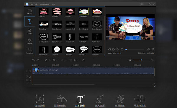 3、搞笑表情贴纸、神字幕,配上文字让你的视频更有趣味性;