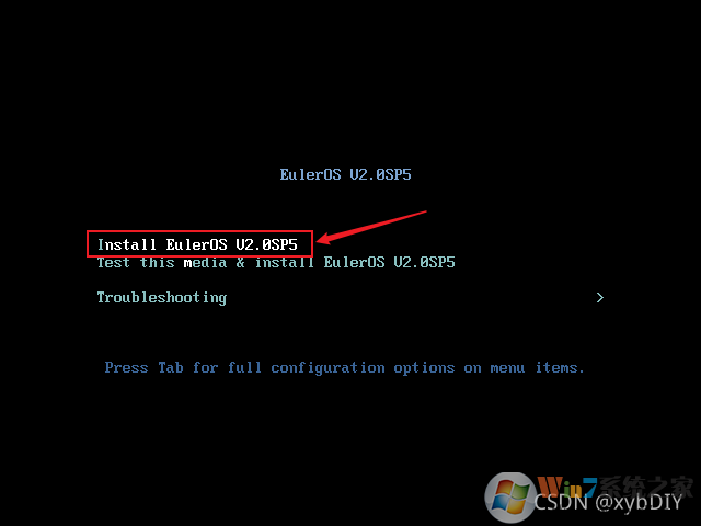 选择Install EulerOS V2.0SP5,敲击回车键加载配置文件。