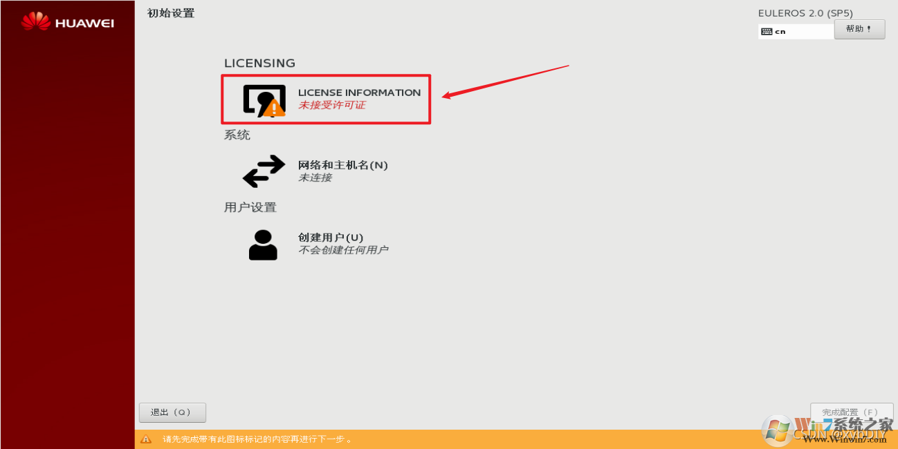 10、设置相关初始化操作,开始使用EulerOS。