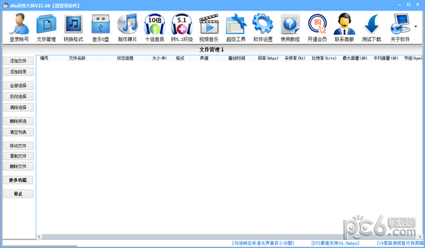 批量音乐转换(含dts、mlp格式);高级参数设置;支持2.0、5.1、有损、无损互转;支持29种格式。