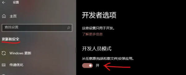 注:安装目录不能带中文!建议直接把两个文件丢到C盘根目录安装。win10系统更新至22h2以上,打开windows设置开发者选项。