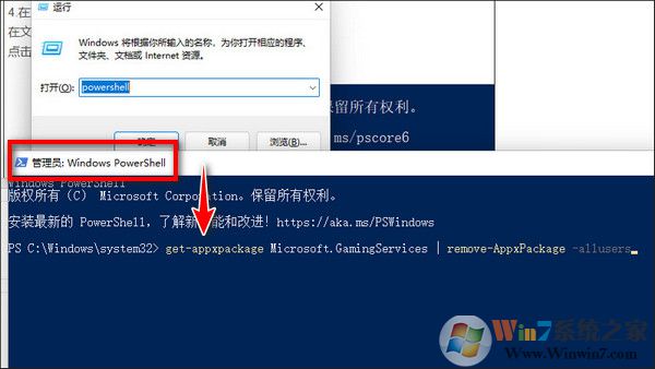 3、复制【get-appxpackage Microsoft.GamingServices | remove-AppxPackage -allusers】到里面,回车