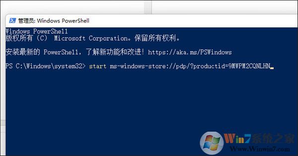 4、复制【start ms-windows-store://pdp/?productid=9MWPM2CQNLHN】回车