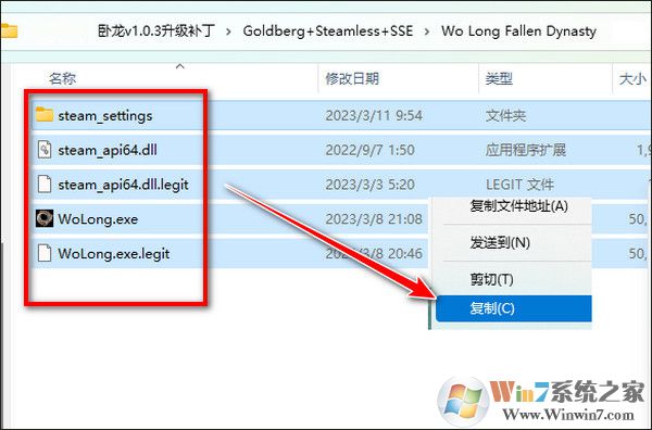 2、进入压缩包Wo Long Fallen Dynasty文件夹内,选中里面所有文件右键复制