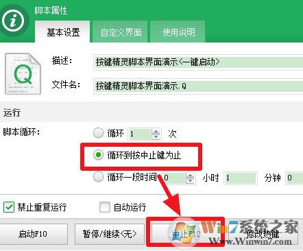 3、如果需要无限循环,选择中间的那个选项,脚本就会一直循环直到按下终止键,一般的终止键是【F12】;