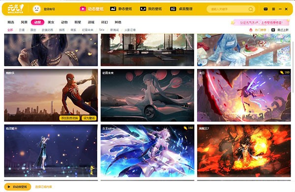 大分类为:动态壁纸,静态壁纸。