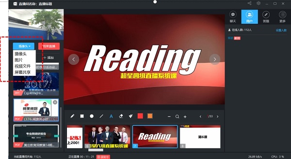 视频画面支持展示 摄像头画面/图片/视频/共享桌面
