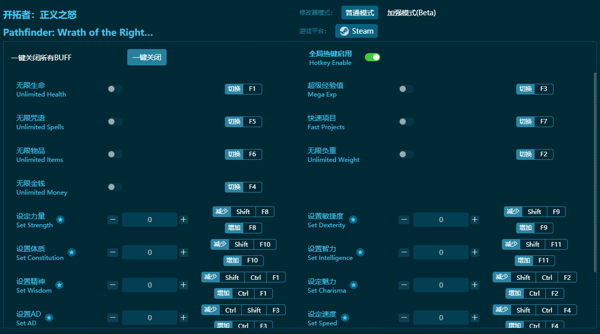 5、等待显示” Buff加持成功”后,我们就可以使用快捷键来启动游戏修改了项目了。