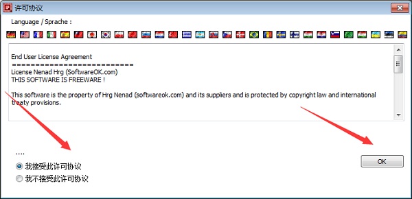 3、勾选我接受许可协议点击OK