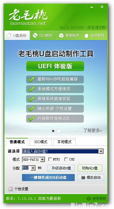 第二步:用老毛桃U盘装系统软件制作启动U盘