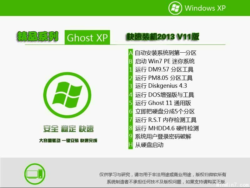 软件名称:精品系列Ghost XP sp3 快速装机版DVD V11